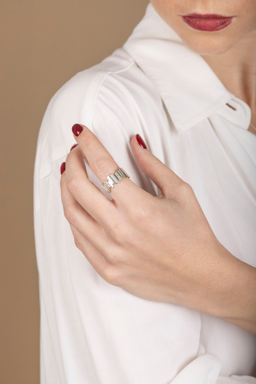 Inspired by the architectural energy of New York, this ring features bold lines and a strong silhouette while maintaining an effortlessly wearable design.