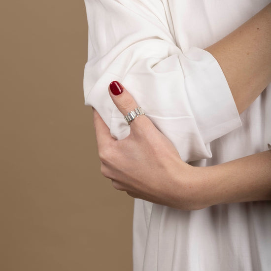 The New York Ring by Naya Jewelry is a striking, minimalist piece handcrafted in France from solid sterling silver and finished with premium rhodium plating for lasting brilliance.