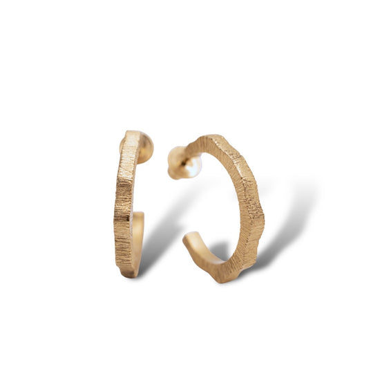 The Ocean Stripe Hoops by Naya Jewelry are sculptural earrings inspired by the rhythm and flow of ocean waves. Handcrafted in France from sterling silver and plated with rich 18K gold vermeil, these hoops feature fluid, asymmetrical lines that evoke movement and natural elegance.