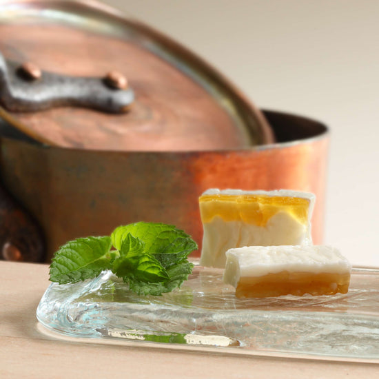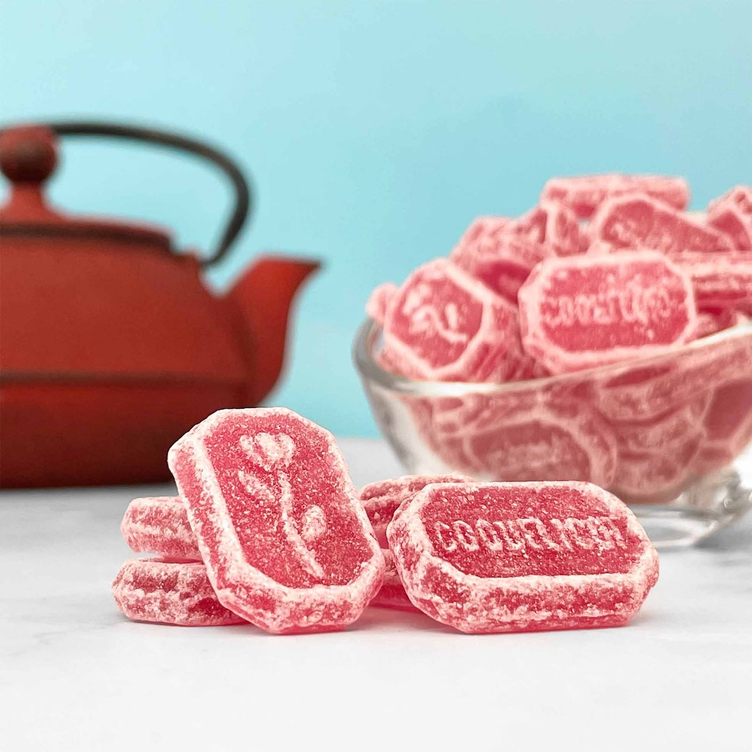 shaped by hand and then embellished with natural flavours. Strawberry, Blackcurrant, Lemon, Orange, Caramel, Mint, Anise.