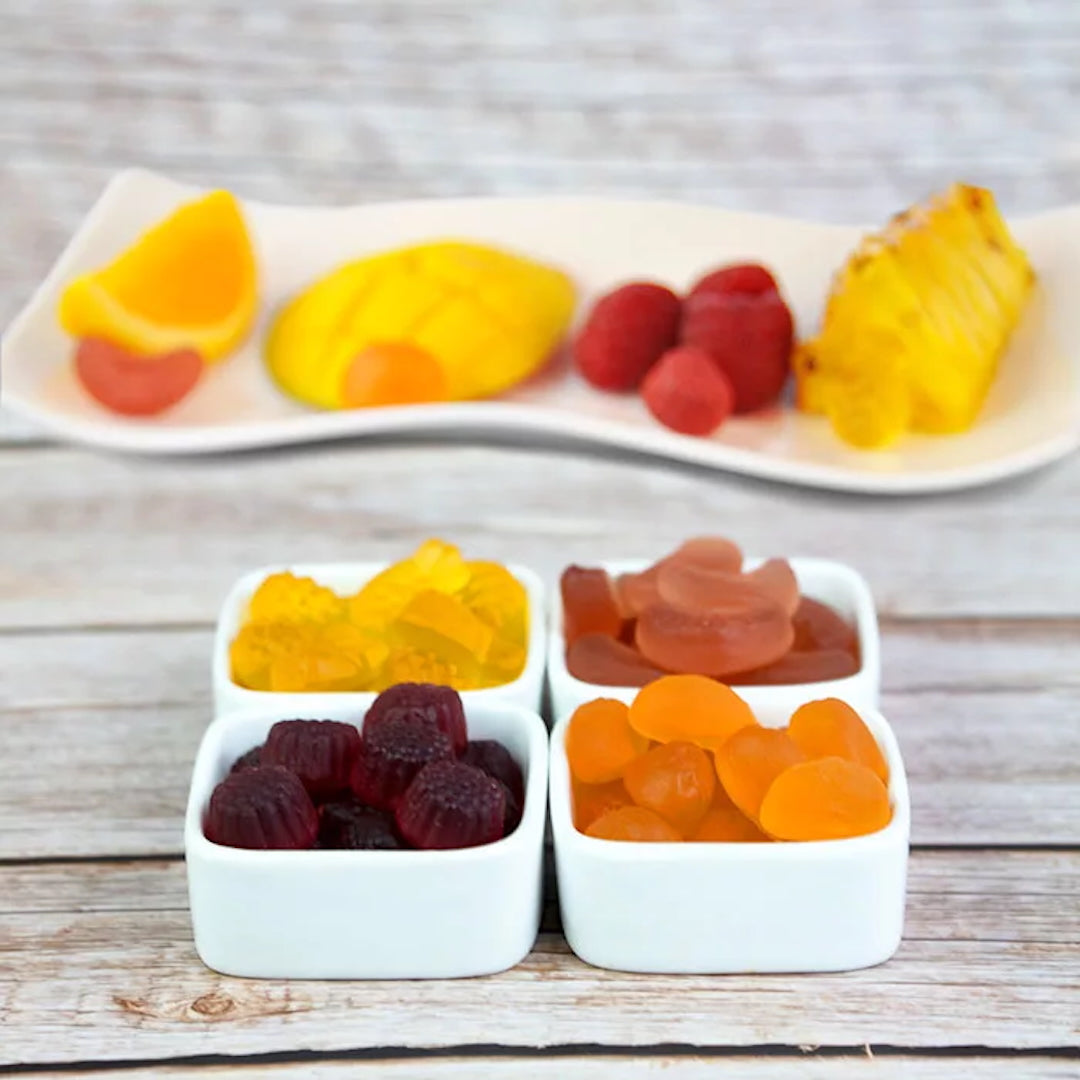 Méli Mélo fruité: Raspberry, pineapple, mango, citrus: these delicious gummies rediscover the sensations of the confectionery of yesteryear, thanks to their natural flavours. Organic and with fruit pectin (so no animal gelatin), they are ideal for vegan and natural pleasure!