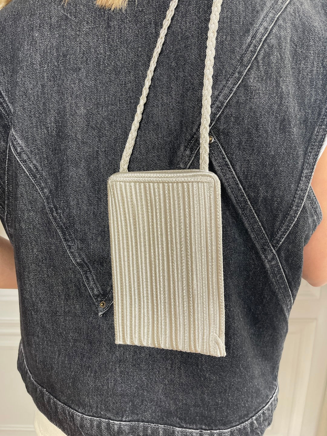 Discover our ultra-stylish phone pouch, designed to combine practicality with timeless elegance. Featuring a chic braided shoulder strap, it keeps your phone close at hand throughout the day—whether you're running errands, attending events, or enjoying a leisurely stroll.