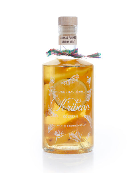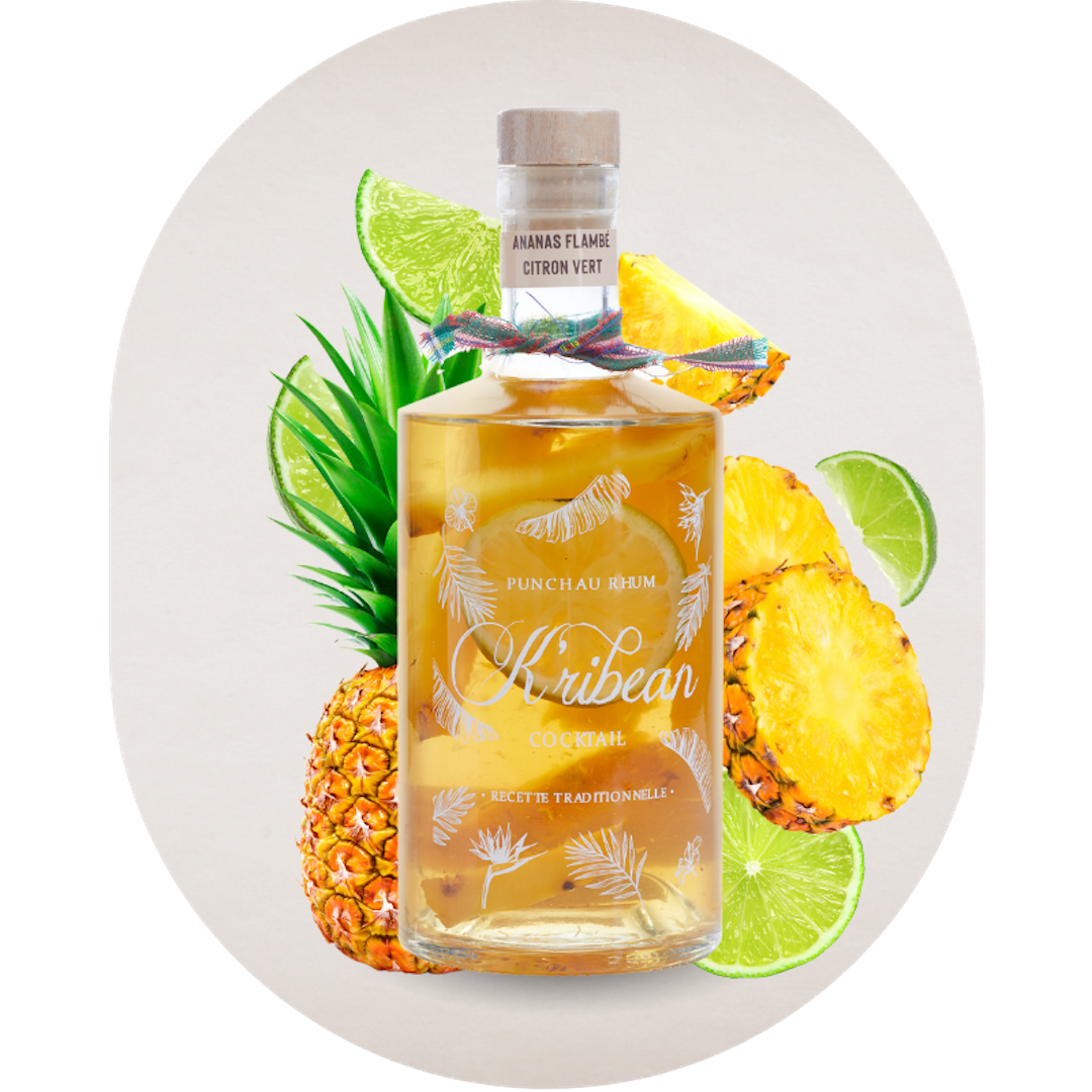 Meet the best-seller of the K’ribean Cocktail collection: a vibrant and indulgent punch that captures the essence of the tropics. The Pineapple Flambéed with Lime Rum Punch is a masterful blend of Victoria pineapple flambéed in rum, paired with the zest and freshness of lime. The result is a punch that is both bold and balanced, offering a delicious interplay between sweet caramelized pineapple and lively citrus brightness.