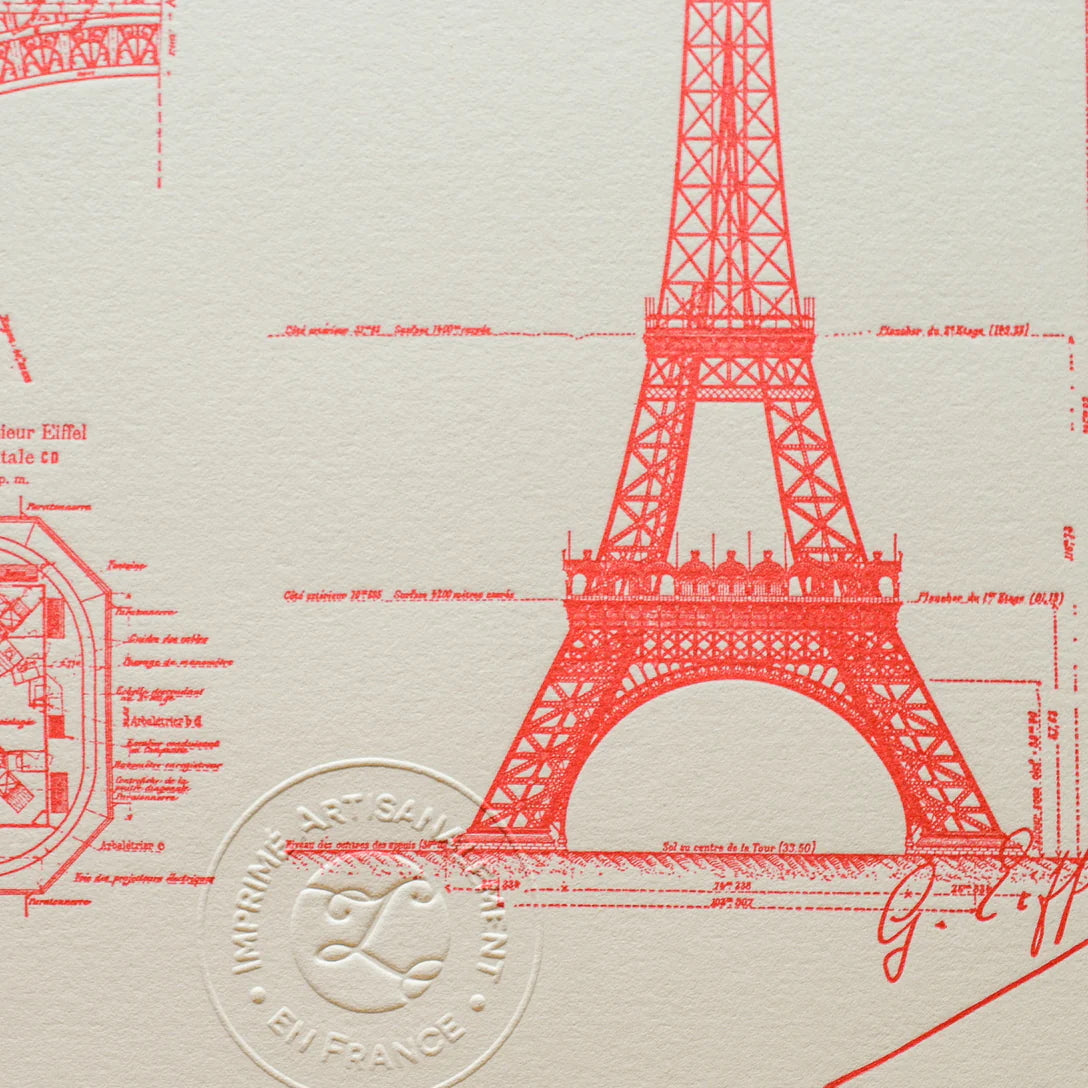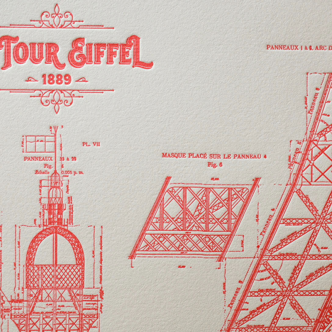 Discover the finer architectural beauty of Paris’s most iconic monument with the Plan Original de la Tour Eiffel, Détails, a refined letterpress print meticulously designed and handcrafted by L’atelier Letterpress in France. This artwork focuses on the intricate details of the Eiffel Tower’s blueprint, capturing the essence of its engineering genius and timeless elegance.