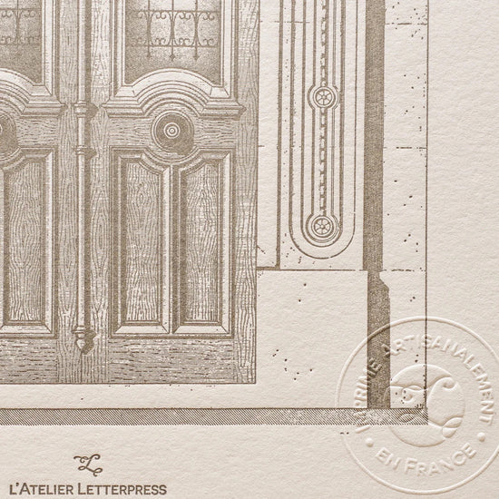 Celebrate the elegance of Parisian architecture with the Porte Rue Sainte-Placide, a fine art print inspired by the grand entrance of a Haussmannian building constructed in 1870. Faithfully recreated from a period engraving, this artwork captures the refinement, symmetry, and charm that define the spirit of Haussmann-era Paris.