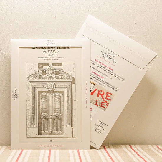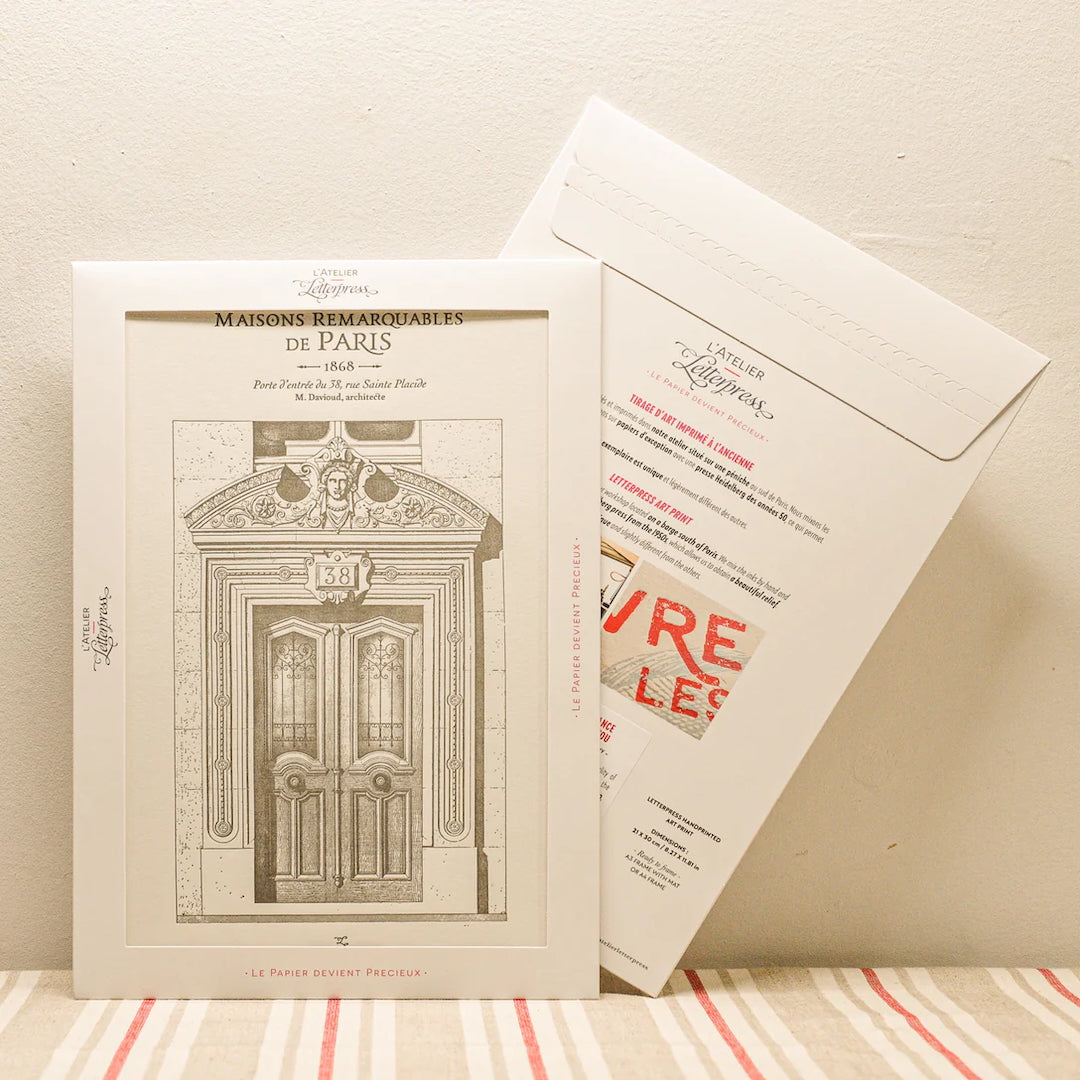 Each print is meticulously crafted using the traditional Letterpress technique, a centuries-old artisanal process that presses the design into luxurious 100% cotton paper. The interplay of light and shadow across the embossed surface gives the door a sculptural dimension, making it as captivating to the touch as it is to the eye.