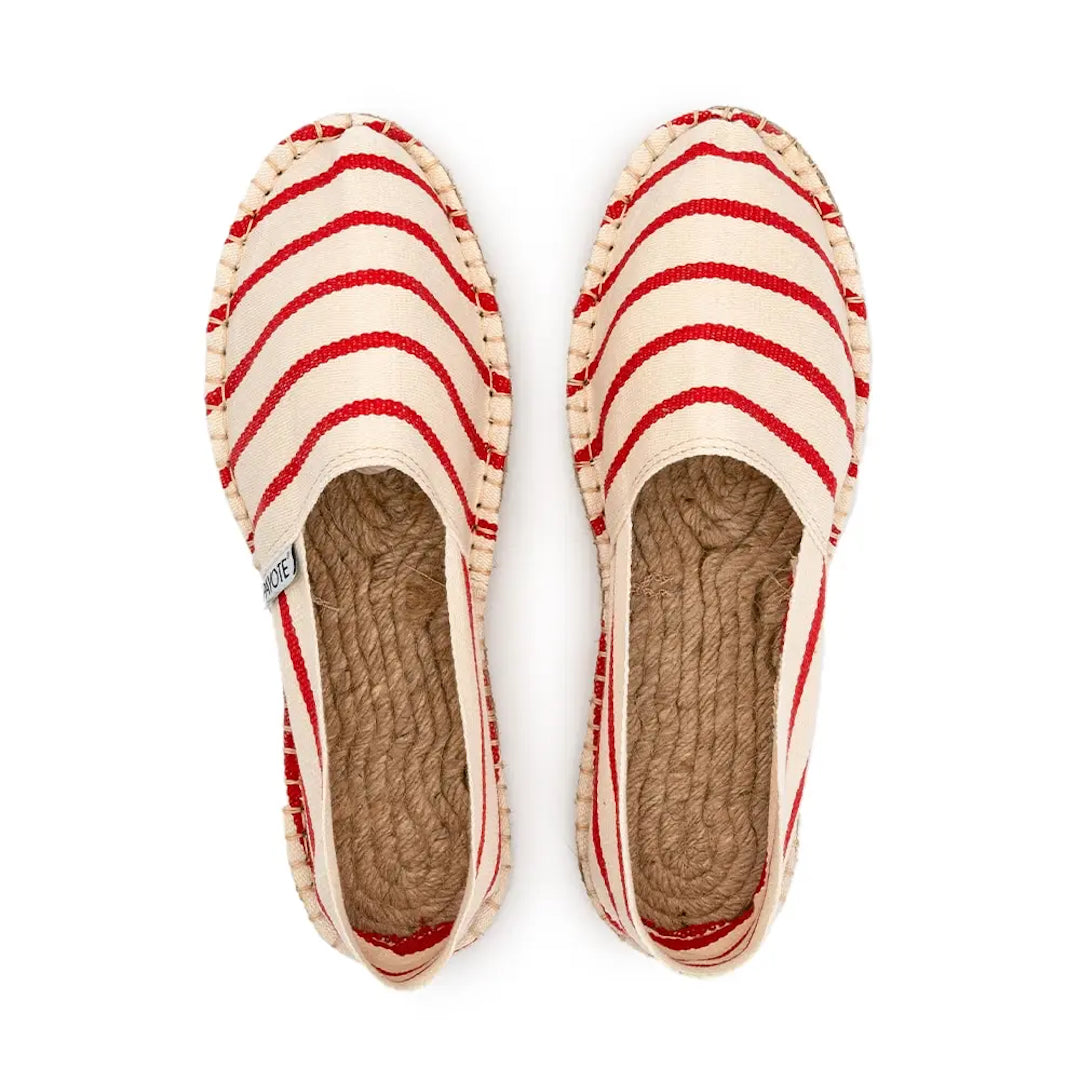 The bold red and white stripes offer a vibrant, confident look that pairs perfectly with denim, white outfits, or summer dresses. Whether you’re heading to the coast or strolling through the city, this espadrille blends heritage design with modern eco-conscious values.