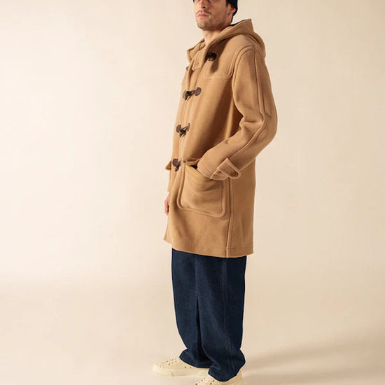 Functional design meets thoughtful details with patch pockets with flaps, perfect for storing essentials, alongside an inside patch pocket with button for added convenience. The button fastening cuff tabs provide a tailored finish to the sleeves, while the inner neck tape enhances comfort and durability. Designed for daily wear in cooler seasons, this classic duffle-coat combines style, warmth, and heritage in one enduring piece.