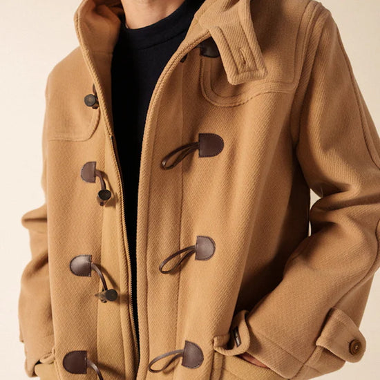 The Malte Saturne Duffle-Coat presents a warm, earthy tone that brings understated sophistication to any outfit. Crafted with attention to detail, it features applique work across the upper body, highlighting its expert tailoring and refined design. The zip fastening with horn and leather toggles not only provides secure closure but also adds a signature touch of classic maritime-inspired style.