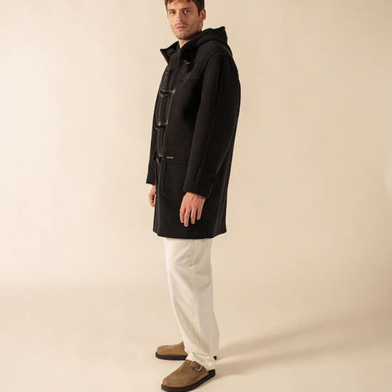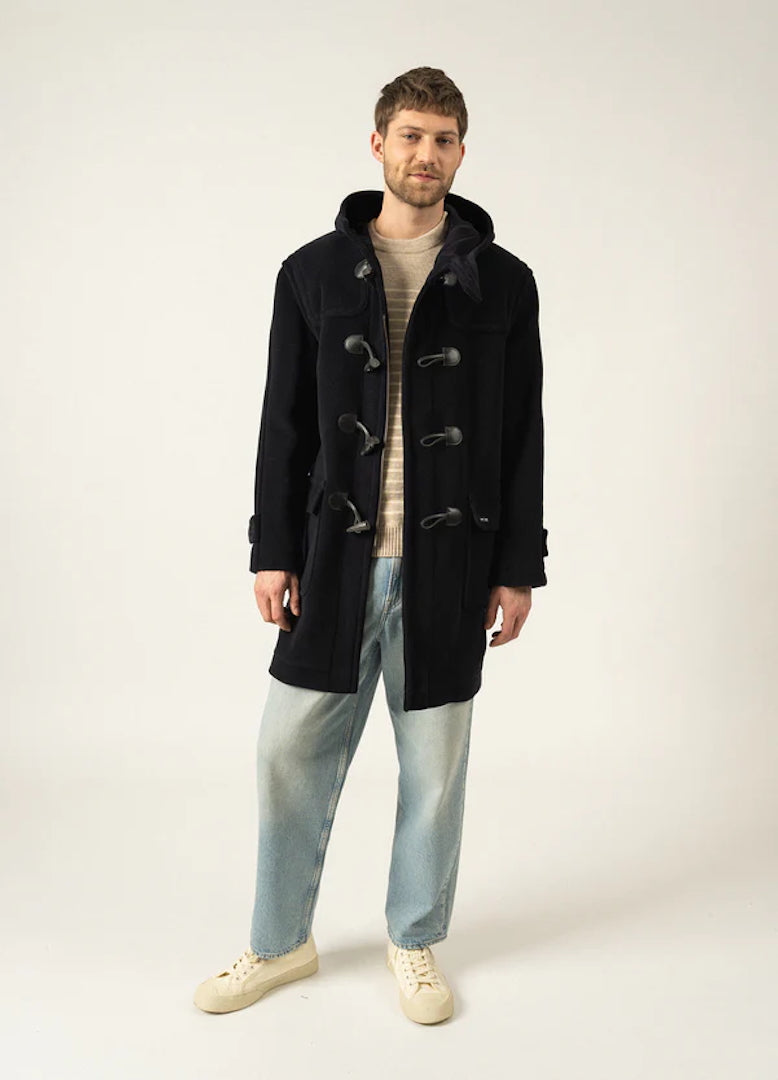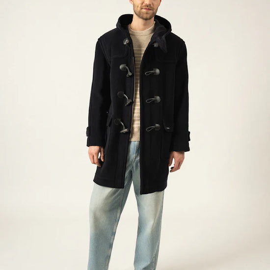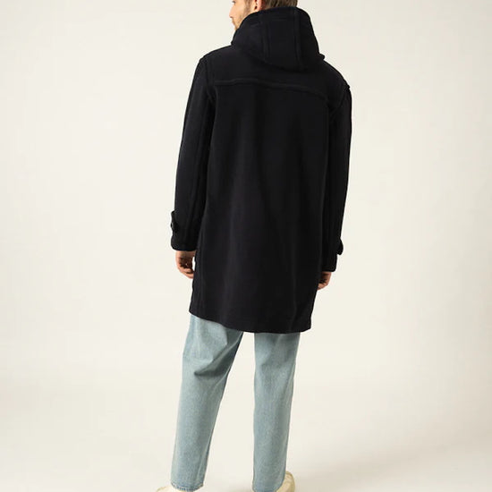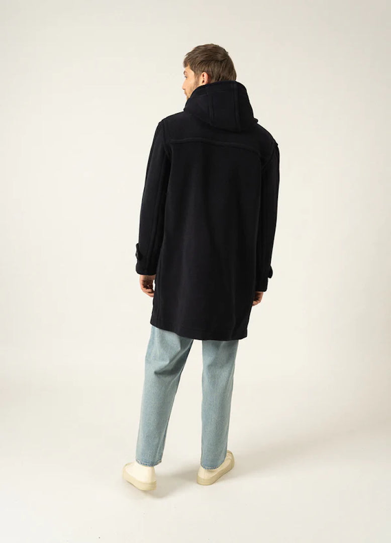 The Navy Saturne Duffle-Coat captures the essence of maritime heritage with its deep blue hue and refined silhouette.