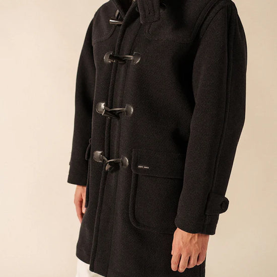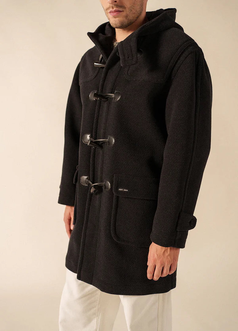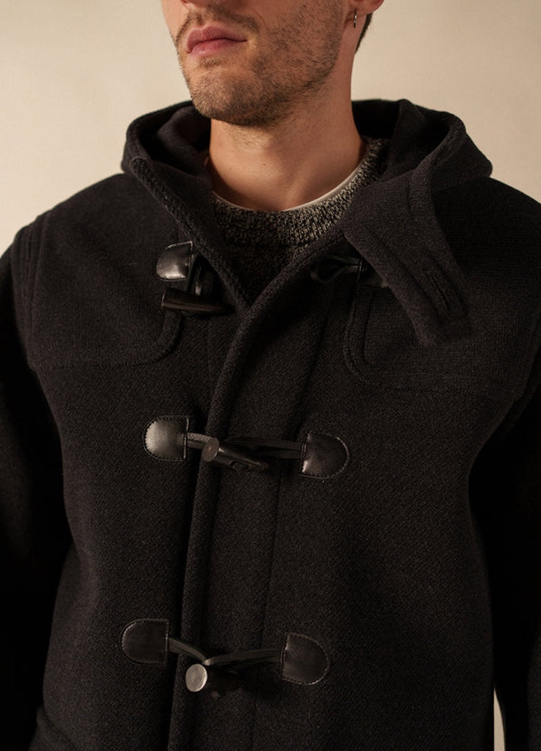 The Anthracite Saturne Duffle-Coat is a timeless piece designed for those who appreciate classic style with practical functionality. Its deep grey anthracite shade exudes understated elegance, making it a versatile addition to any wardrobe. The coat features applique detailing on the upper body, adding a refined, artisanal touch, while the zip fastening with horn and leather toggles ensures both security and a nod to traditional craftsmanship.