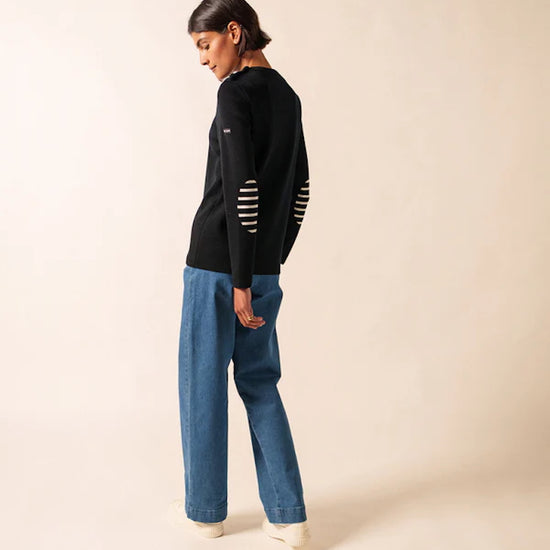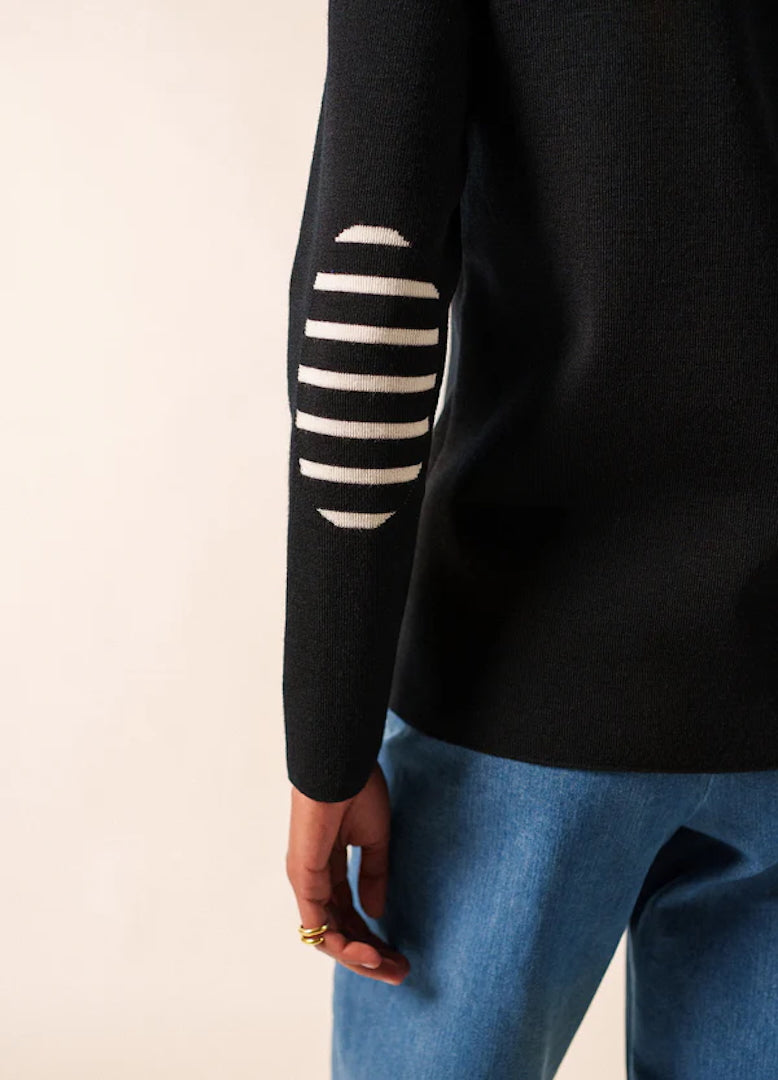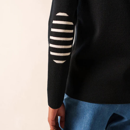 Black Jumper with stripped elbow patches - Brégançon