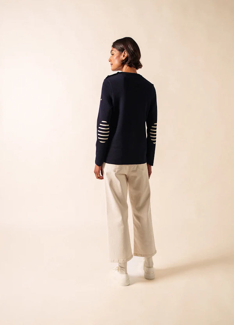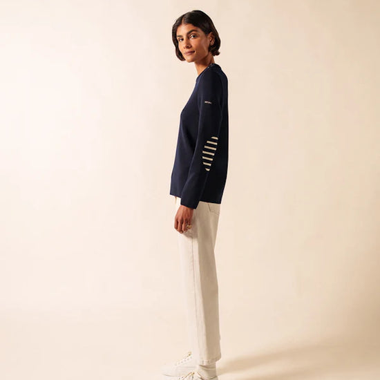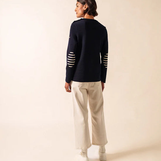 Navy Jumper with stripped elbow patches – Brégançon