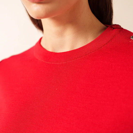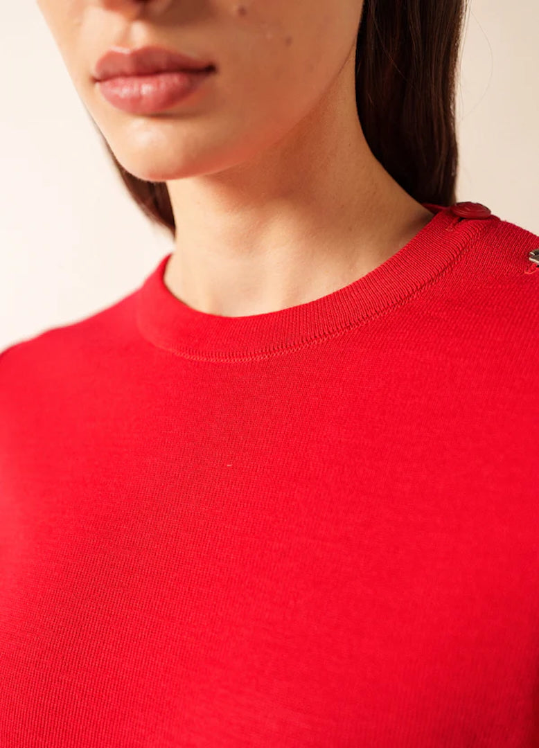 Cut in a straight, comfort fit, the Brégançon provides more ease than our Marée jumper while preserving the clean lines and authenticity of traditional Breton knitwear. The Tulipe color brings a lively, modern touch—an elegant burst of brightness that elevates this iconic silhouette. Refined details such as reinforced elbow patches and a sailor shirt–inspired button add subtle character, echoing our nautical roots with a contemporary note.