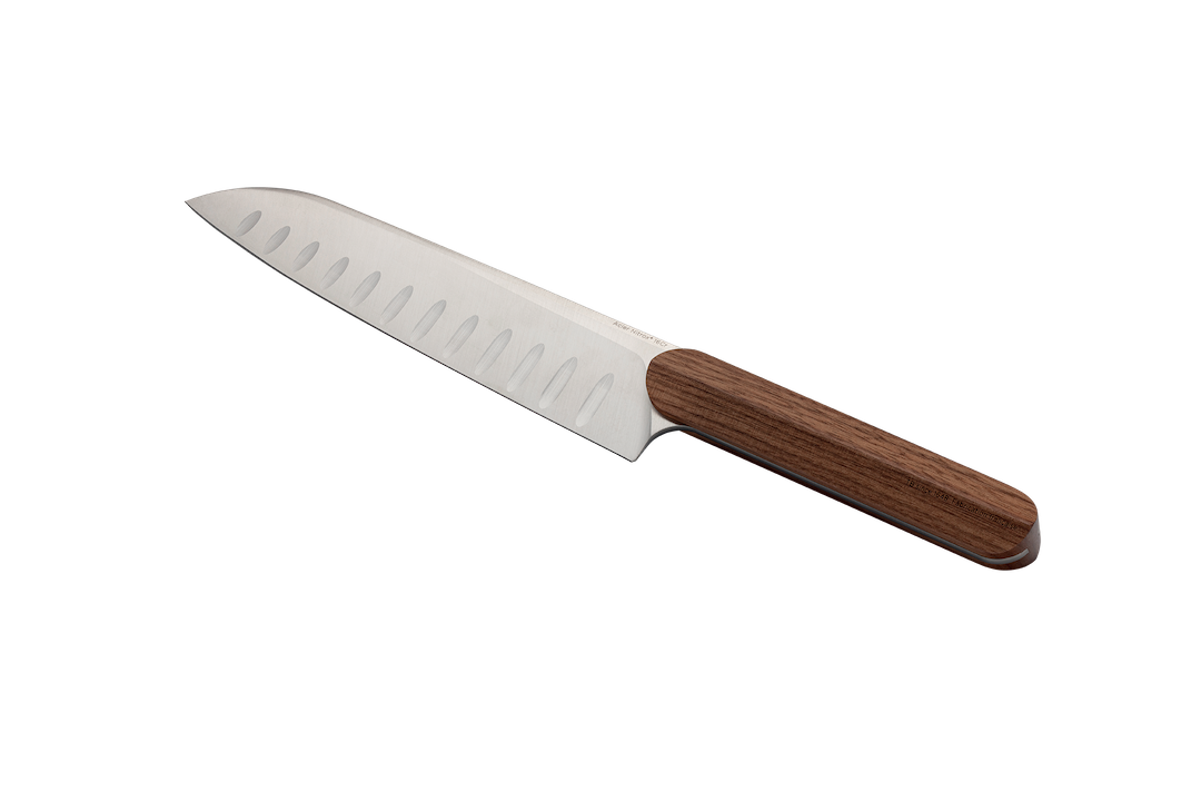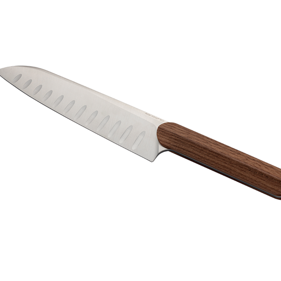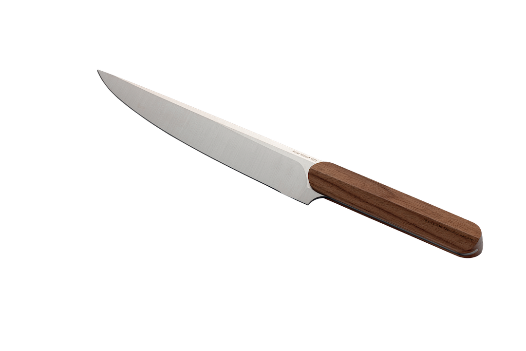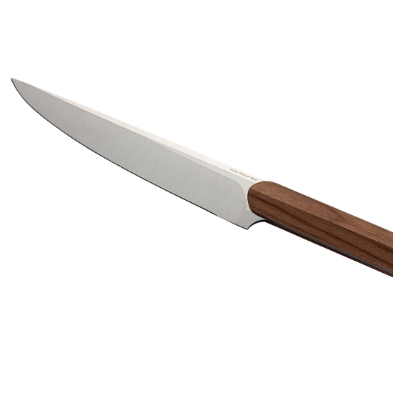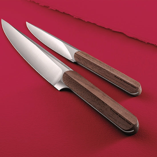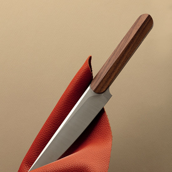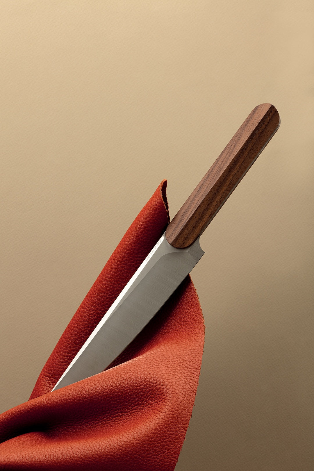 Each blade is perfectly balanced with a beautifully beveled warm walnut handle that offers both ergonomic comfort and refined style. The harmony between natural wood and polished steel creates a timeless design that enhances any kitchen, from traditional to modern.