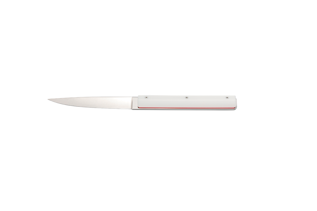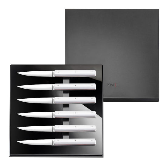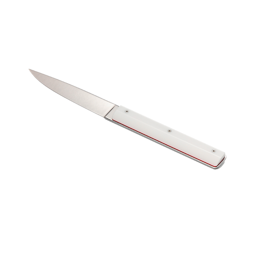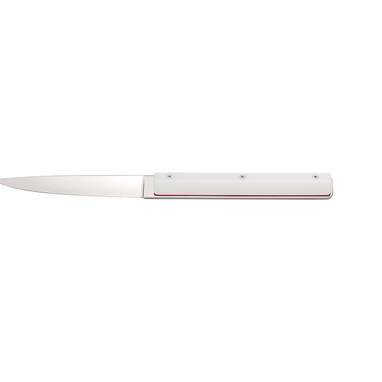 Each knife features a polished white resin handle, bringing a touch of luminosity and sophistication to your table. Smooth and refined, the handle is ergonomically designed for comfort, making every use both practical and pleasurable. Its crisp white finish pairs effortlessly with any table décor, from minimalist modern settings to classic elegance.