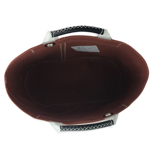 The bag features dark blue braided handles, hand-tied for strength and comfort, ensuring a pleasant carrying experience. The robust sailcloth material is not only sturdy and long-lasting but also easy to maintain, making it ideal for regular use.