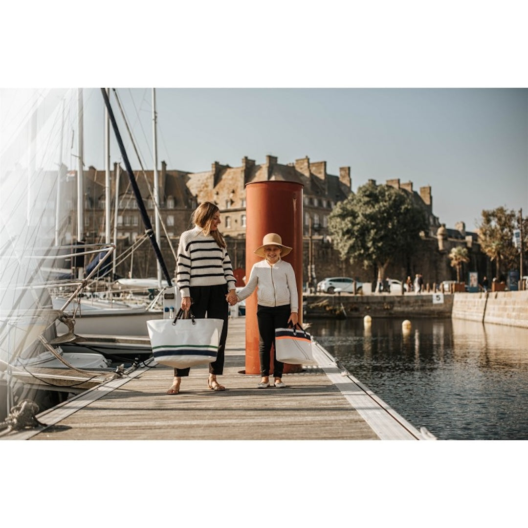 Small Sail Shopping Bag - La Conchée With Navy Blue And Orange Stripes