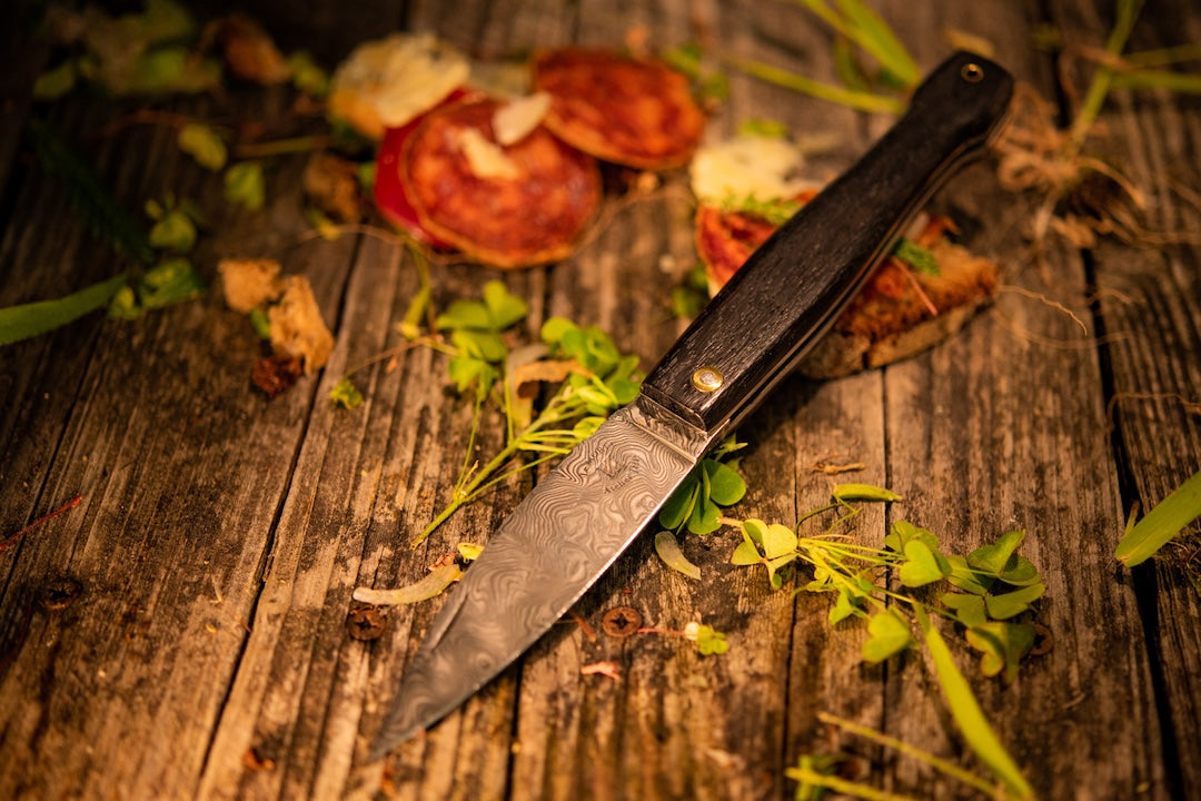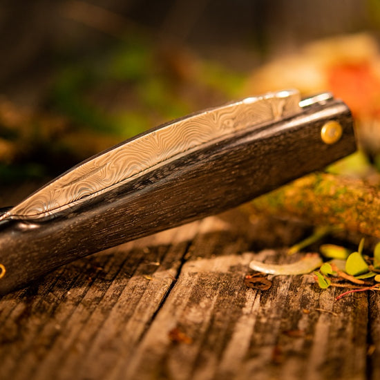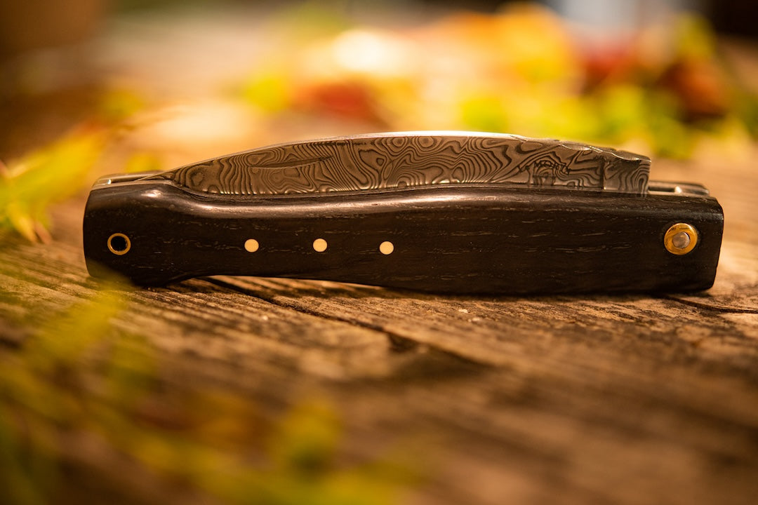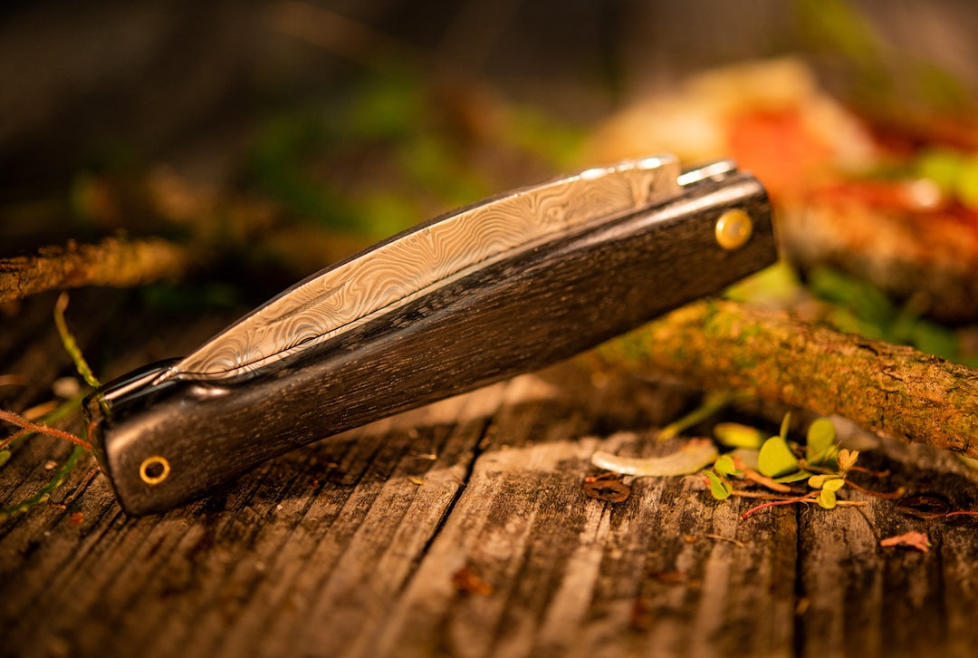 A folding knife, yes – but not just any folding knife. This is a Morta knife equipped with a stunning Damascus blade, combining craftsmanship, performance, and timeless appeal.