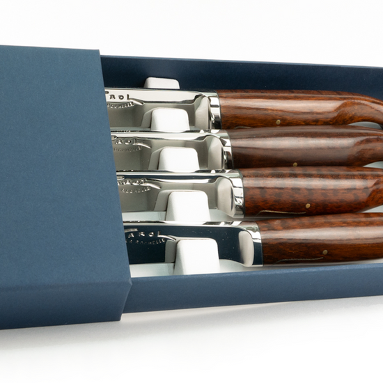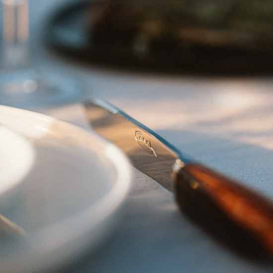 The Cachalot Table Knife in Amourette by Farol is a true masterpiece of French cutlery, combining artisanal expertise, ergonomic design, and exceptional materials. Handmade in La Rochelle, it reflects Farol’s dedication to over 30 years of craftsmanship and innovation.
