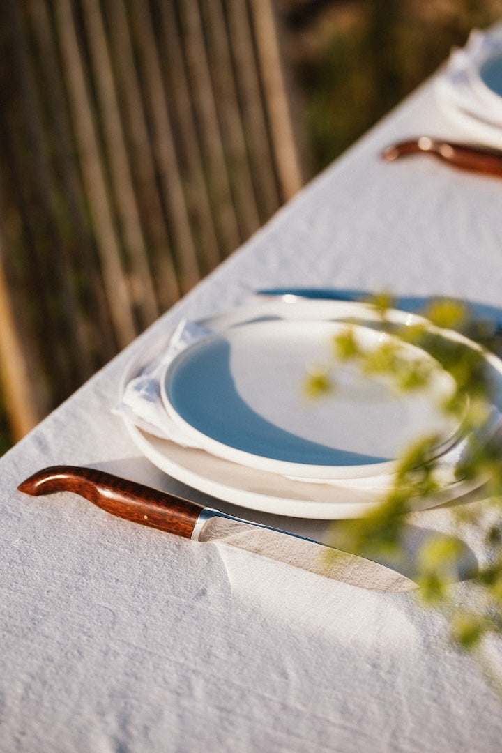 Designed for versatility, the Cachalot Table Knife is razor-sharp for meat and perfectly suited for fish, making it an all-purpose dining companion. Its unique design also allows it to stand upright on the table with the blade positioned vertically, marrying functionality with elegant presentation.