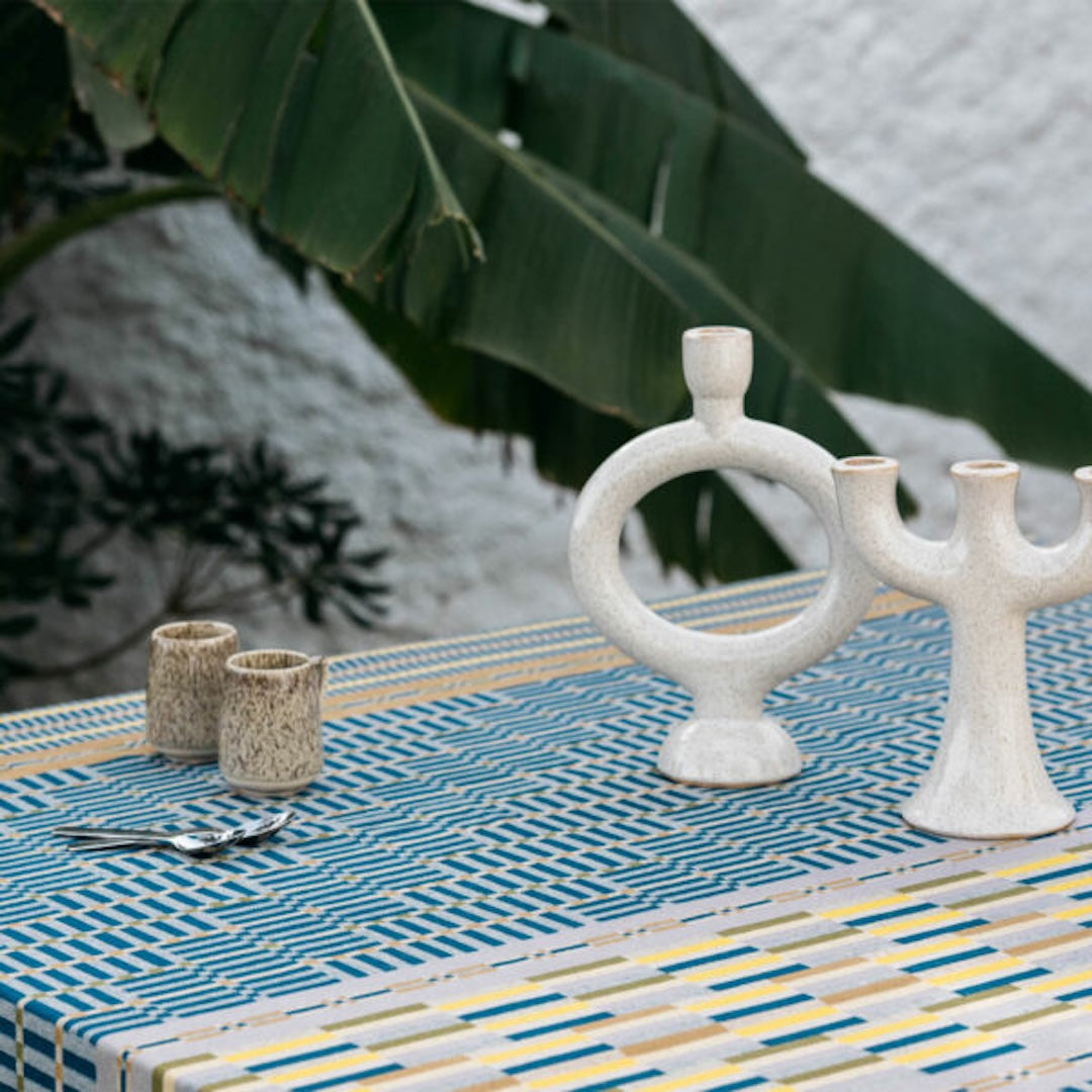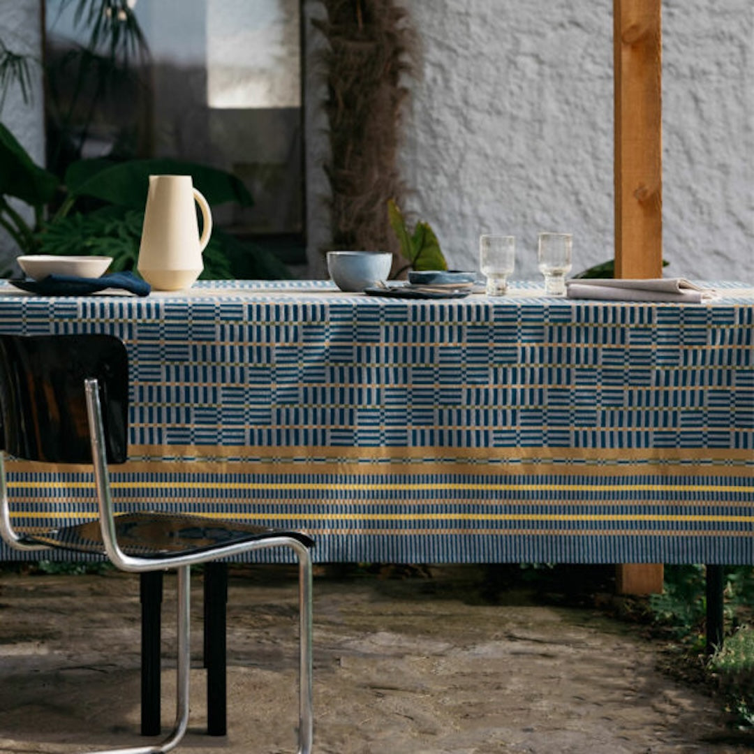 The Blue Graphic Tablecloth reflects the unique savoir-faire of Moutet Tissage, a heritage weaving house from France. By blending contemporary artistry with timeless quality, it turns every meal into a chic and memorable dining experience.