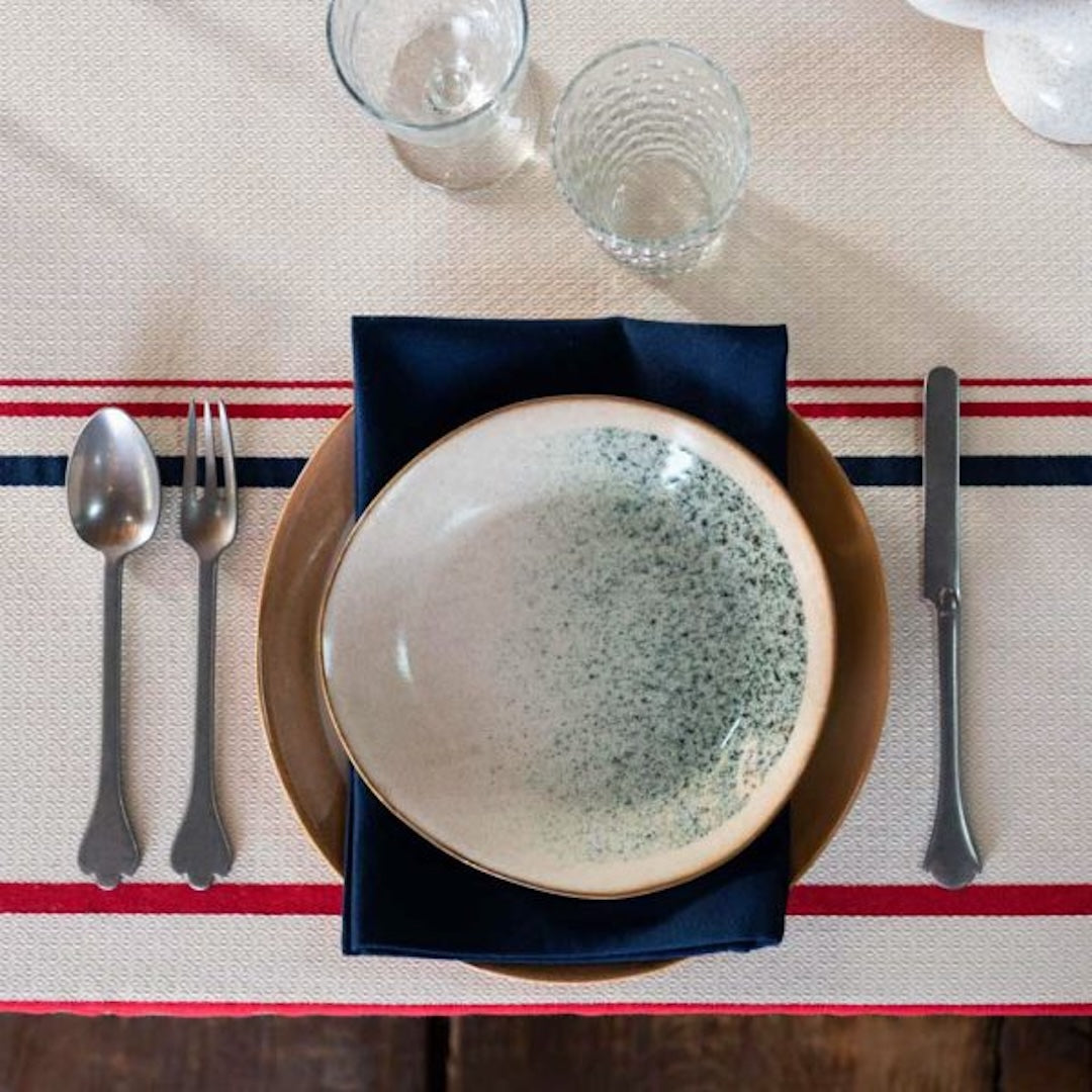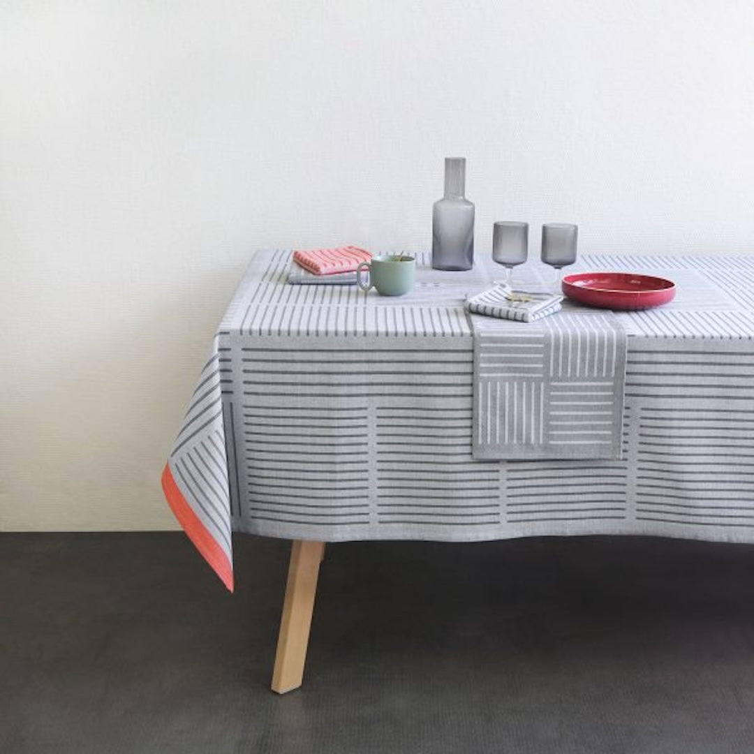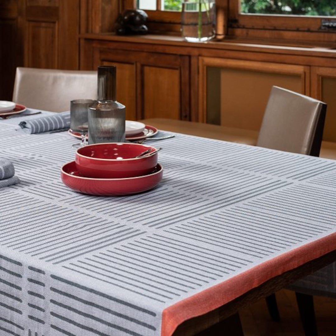 This striped tablecloth reflects the heritage of Moutet Tissage, a French weaving house established in 1919. Each piece carries the legacy of authentic craftsmanship, blending timeless tradition with a bold, modern design to elevate your dining space.