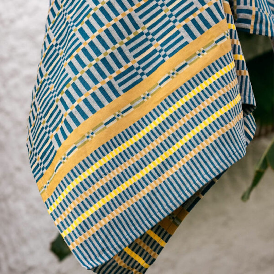 The Blue Graphic Tablecloth reflects the refined savoir-faire of Moutet Tissage, a heritage weaving house established in France. Its bold design and artisanal quality make it a centerpiece for large dining occasions, blending style, practicality, and cultural authenticity.