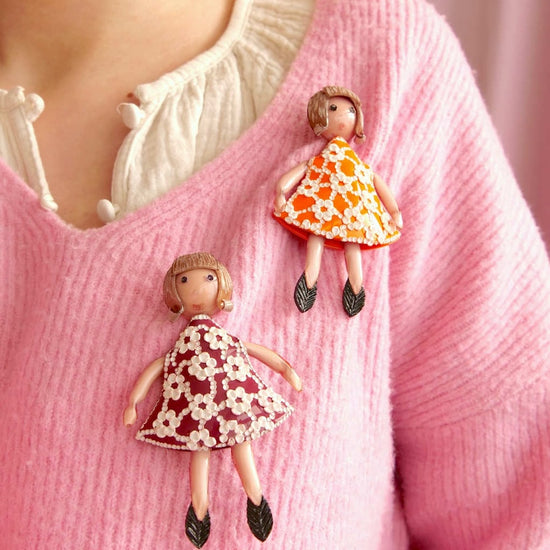Our exclusive Émaline resin gives the Tifille Brooch its signature lightness and luminosity. The raspberry shade, achieved through artisanal pigments, glows with a joyful intensity. Durable yet delicate, it mirrors the beauty of nature — fresh, lively, and full of character.