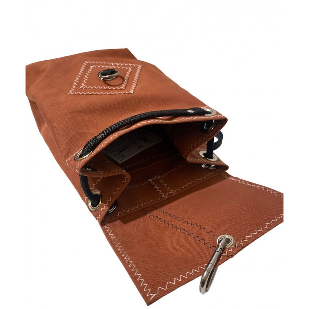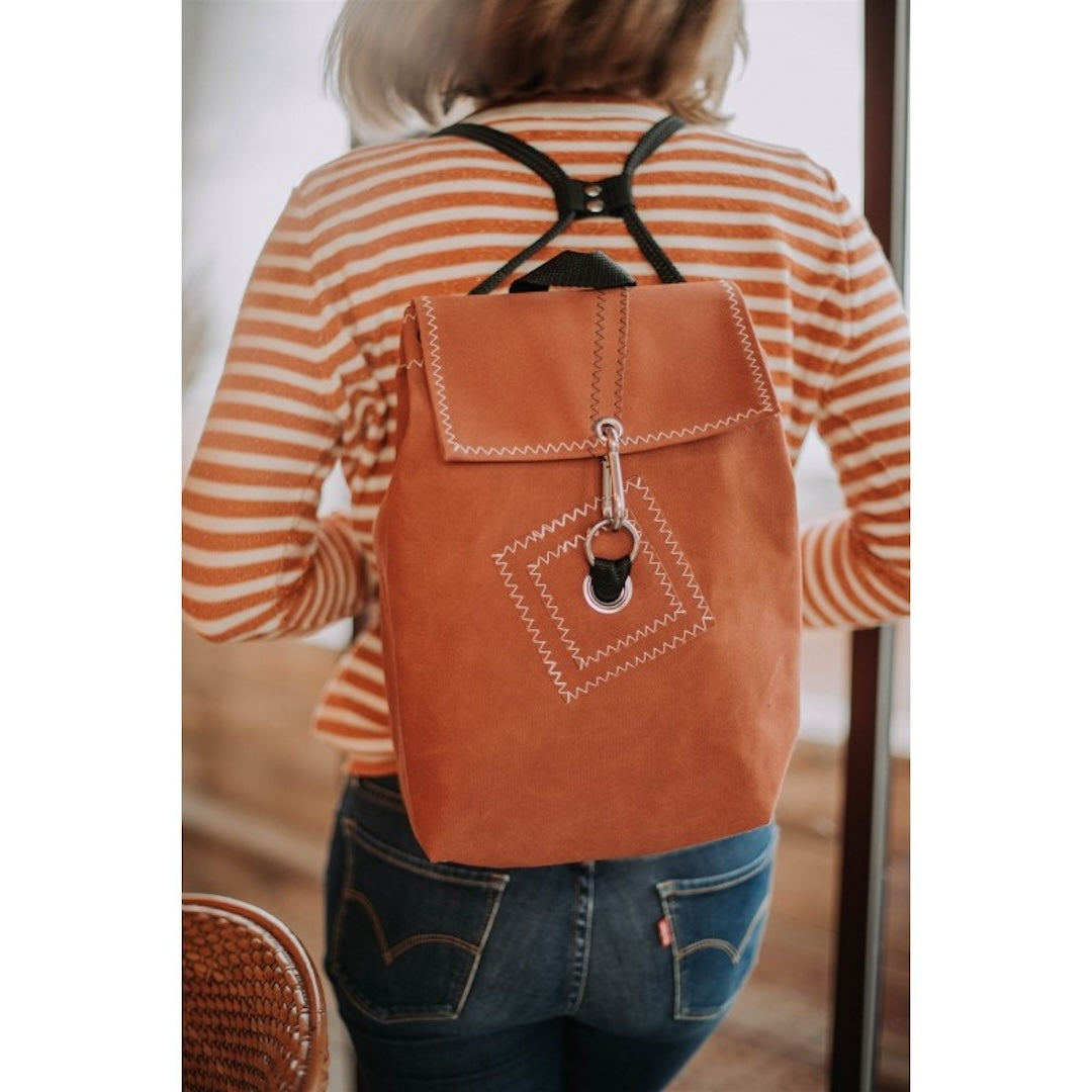 The Treasure Terracotta Sail Backpack blends heritage, style, and practicality in a unique, eco-conscious design. Handcrafted from vintage sailcloth, once part of historic boat rigging, this piece carries a story of the sea while presenting a rich terracotta hue that exudes timeless charm. Its warm, earthy tones make it a versatile accessory for both urban and coastal adventures.