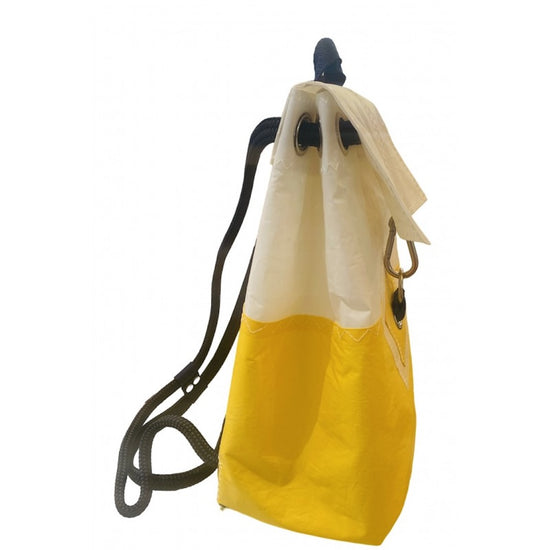 The Treasure Yellow Spi Sail Backpack from Vent de Voyage is a vibrant expression of nautical charm and eco-conscious design. Handcrafted in France from upcycled spinnaker sail material, this compact backpack blends durability, lightweight practicality, and striking aesthetics.