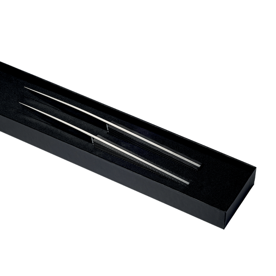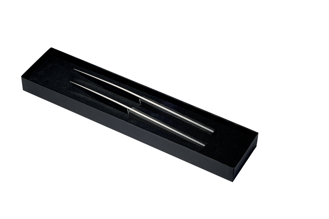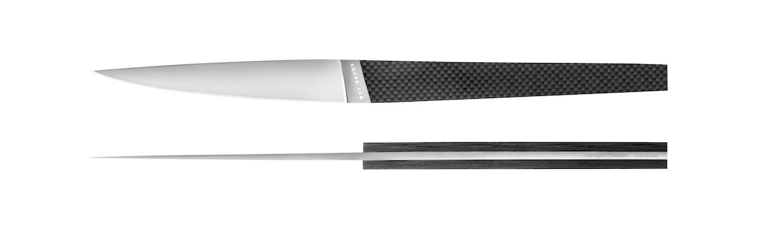 Expertly forged in Alenox steel, the blades are hardened for maximum durability, ensuring razor-sharp precision with every cut. The carbon fiber handles add a striking modern contrast — light, durable, and with a subtle texture that provides an impeccable grip. Together, the materials offer the perfect blend of resilience, elegance, and sophistication, making this duo a symbol of contemporary luxury dining.