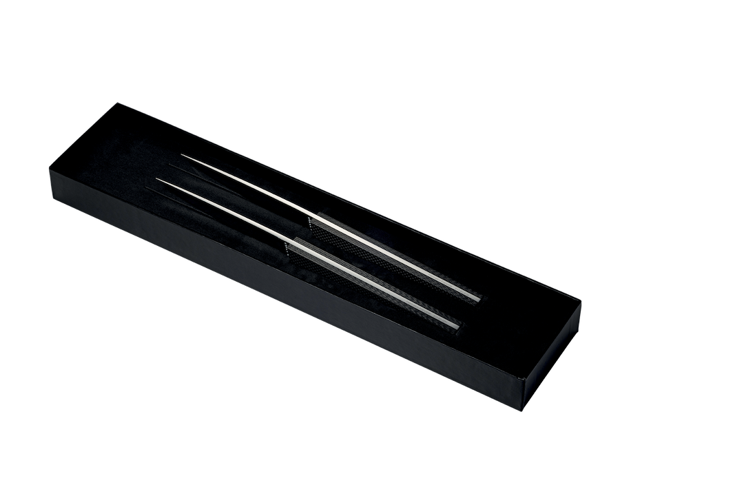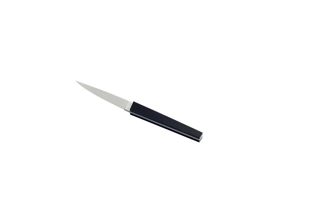 Each Ulu knife is forged from Alenox steel, hardened for long-lasting sharpness and strength, ensuring effortless precision at the table. The carbon fiber handle provides a refined contrast — lightweight, ergonomic, and with a subtle texture that offers both comfort and sophistication. This marriage of advanced materials and traditional inspiration makes the Ulu duo an exceptional example of artistry and functionality.
