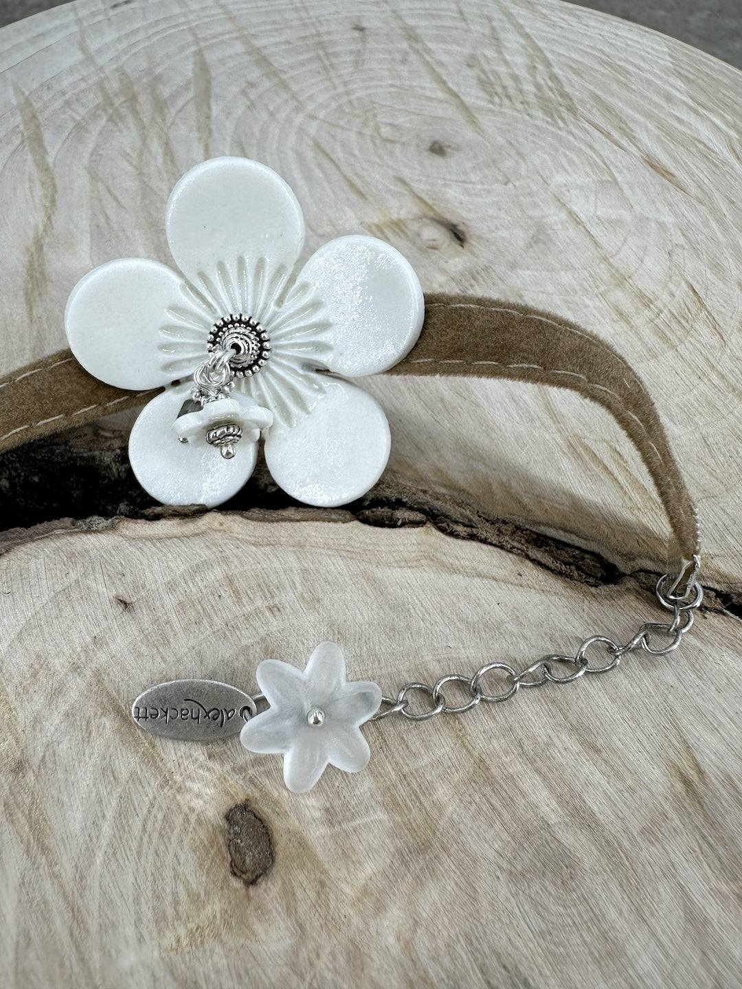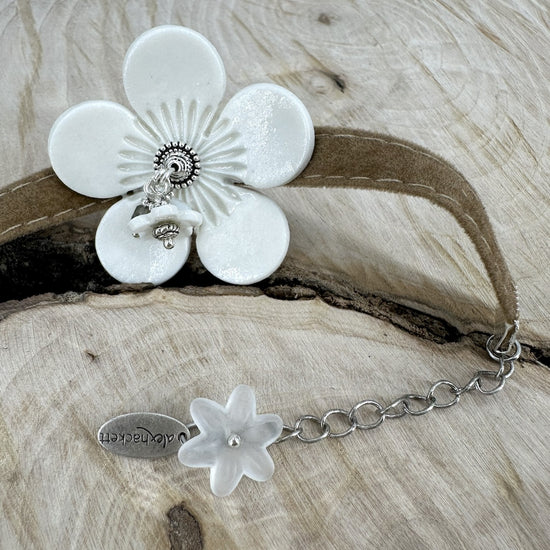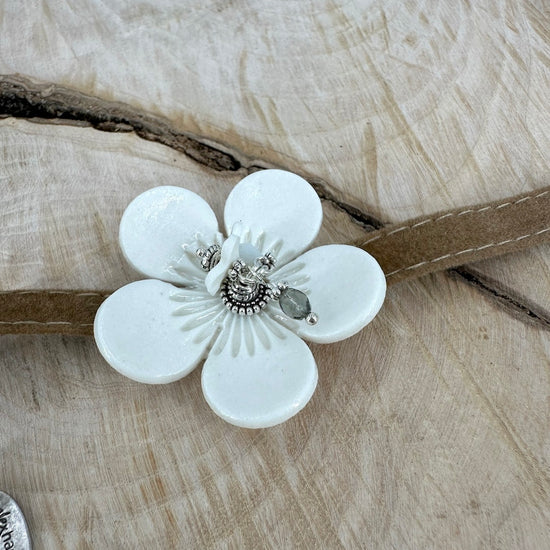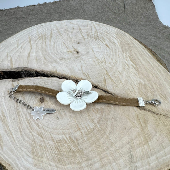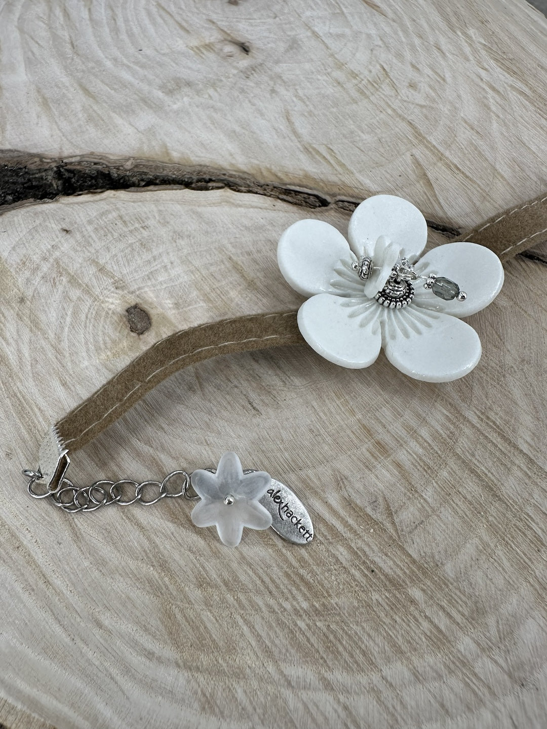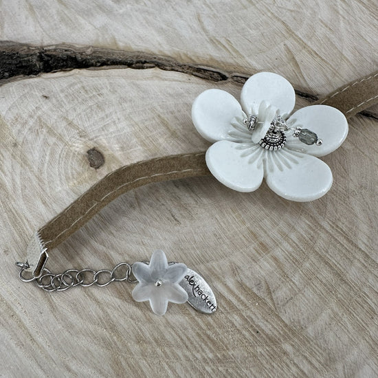 Velvet bracelet with curved porcelain flower
